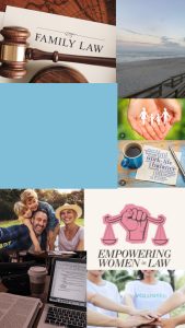 It is a career goal of mine to practice family law. I would love to be able to fight for those who need it most. Going through a divorce, custody battle, or death of a loved one is hard enough. I want to be able to help those with the law that involves such emotional times. The photos of studying, law and family all contribute to my goal of becoming a family lawyer.